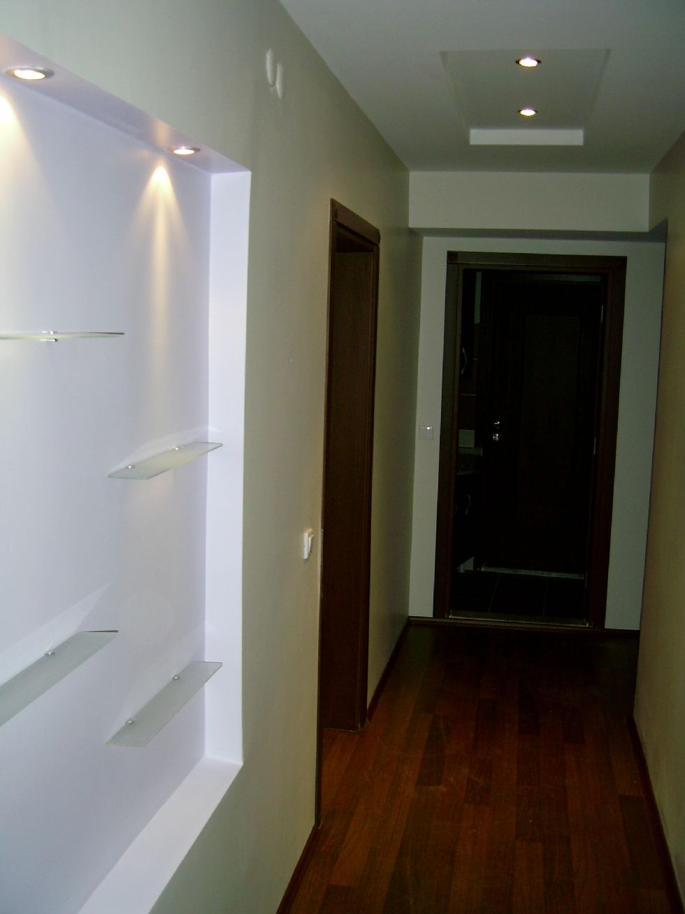 • Antrenin tümü,oturma odası, Mutfak ta ve yatak odası yatak başlığı asma tavanlar